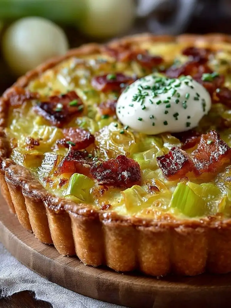 Délicieuse recette de tarte aux poireaux façon grand-mère avec des instructions détaillées et des informations nutritionnelles.