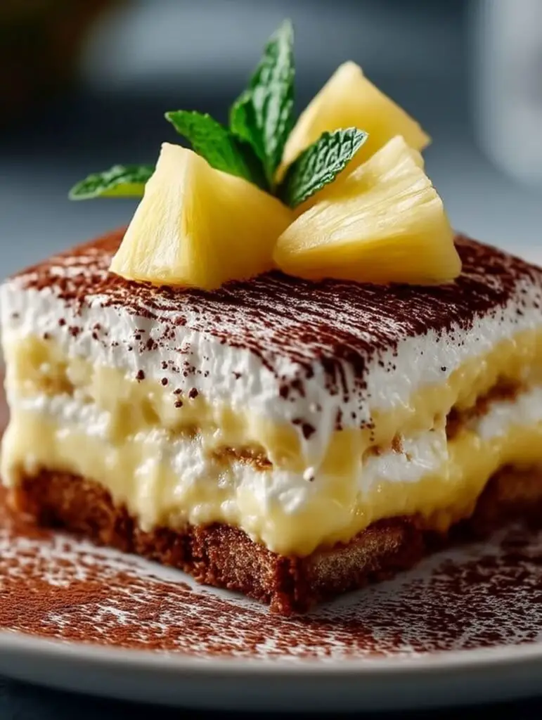 Le Tiramisu Ananas Coco est prêt ! Cette version revisitée du classique italien apportera soleil et bonne humeur à votre table. N’hésitez pas à l’adapter selon vos préférences ou celles des invités – c’est aussi ça, la magie des desserts faits maison !