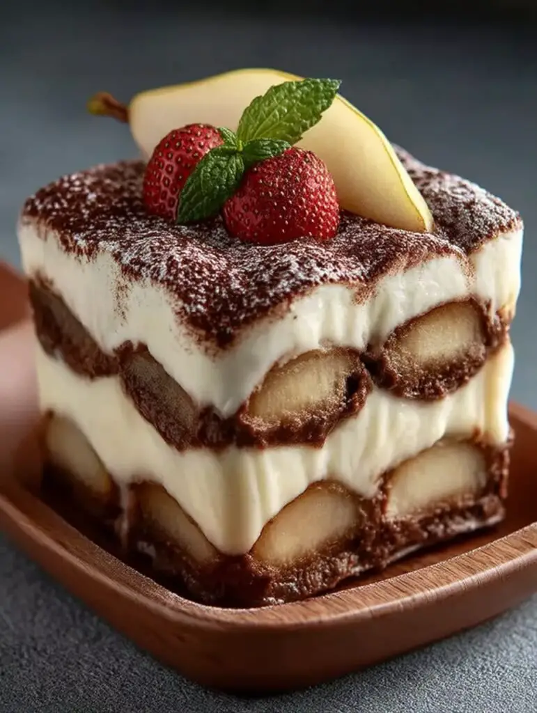 Préparer ce Tiramisu Chocolat & Poires est un jeu d’enfant, même pour les novices en cuisine. Son profil de saveur unique marie la douceur des poires avec l’intensité du chocolat, offrant une expérience gustative inoubliable. Visuellement, il impressionne par ses couches délicates et sa présentation élégante. De plus, vous pouvez personnaliser cette recette en ajoutant des épices ou en variant les fruits selon vos envies.