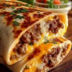 Délicieuse recette de wraps de viande hachée à l’ail et au fromage avec des instructions détaillées et des informations nutritionnelles.